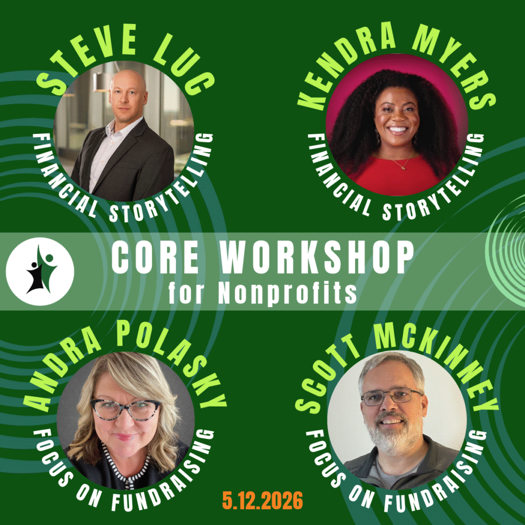 Your mission deserves to be told well. The CORE Workshop brings together financial storytelling experts and seasoned fundraisers to give your team the tools to communicate your impact and grow your donor base. Practical, actionable, and built specifically for nonprofit professionals like you.