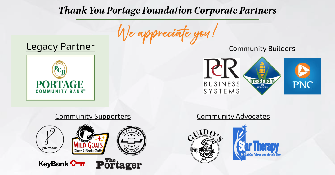 - Featured as the Title Sponsor of all Portage Foundation events on all materials for 12 months, including Experience Portage County, the Pickleball Classic, as well as our Non-Profit workshops, conferences, and community events